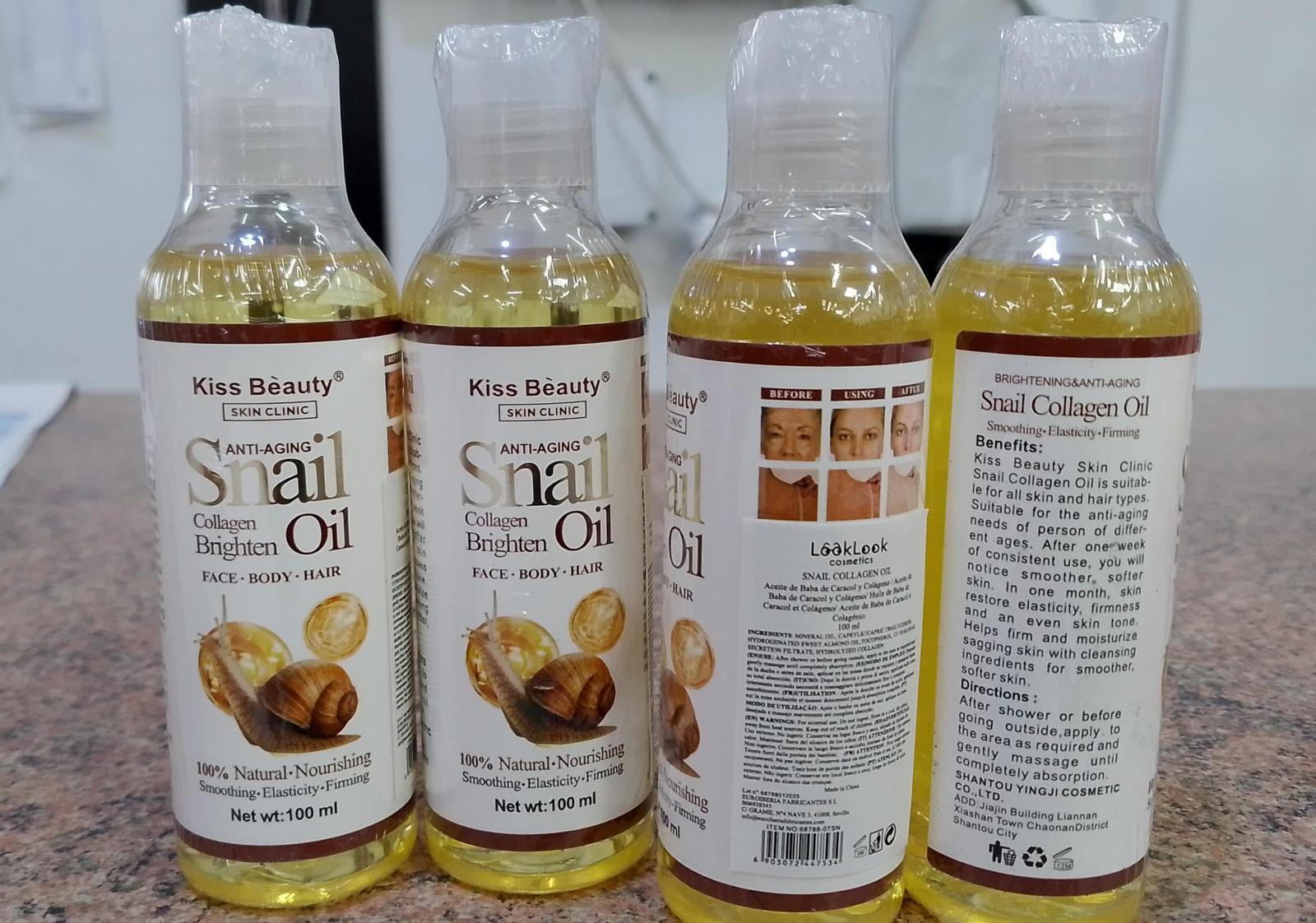 El producto es el aceite «Snail Brighten Oil» de la línea Skin Clinic de Kiss Beauty, diseñado para rostro, cuerpo y cabello.