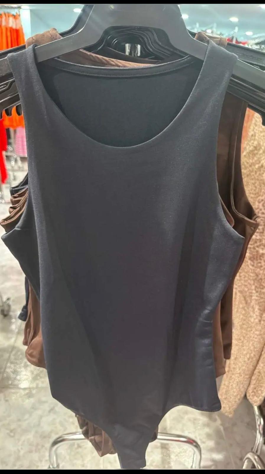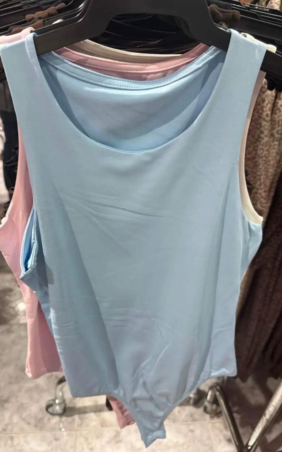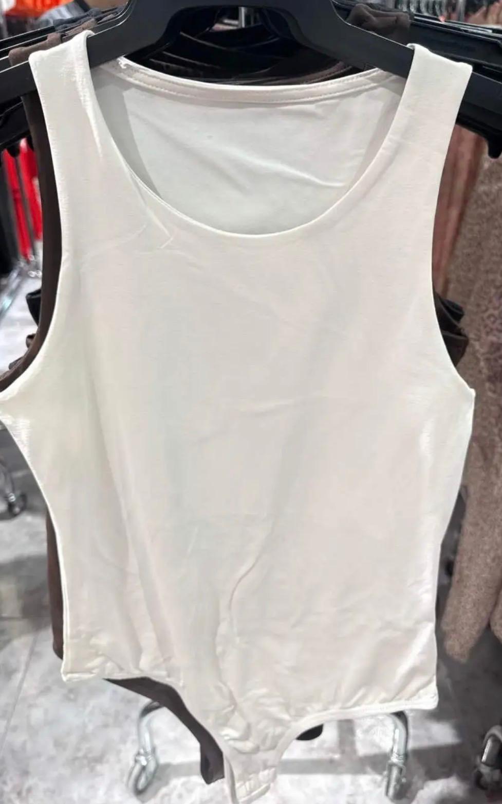 Esta imagen muestra una colección de bodys básicos sin mangas con cuello redondo.