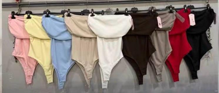 Bodys de tipo «palabra de honor» o strapless, que destacan por su diseño ajustado y el detalle doblado en la parte superior.
