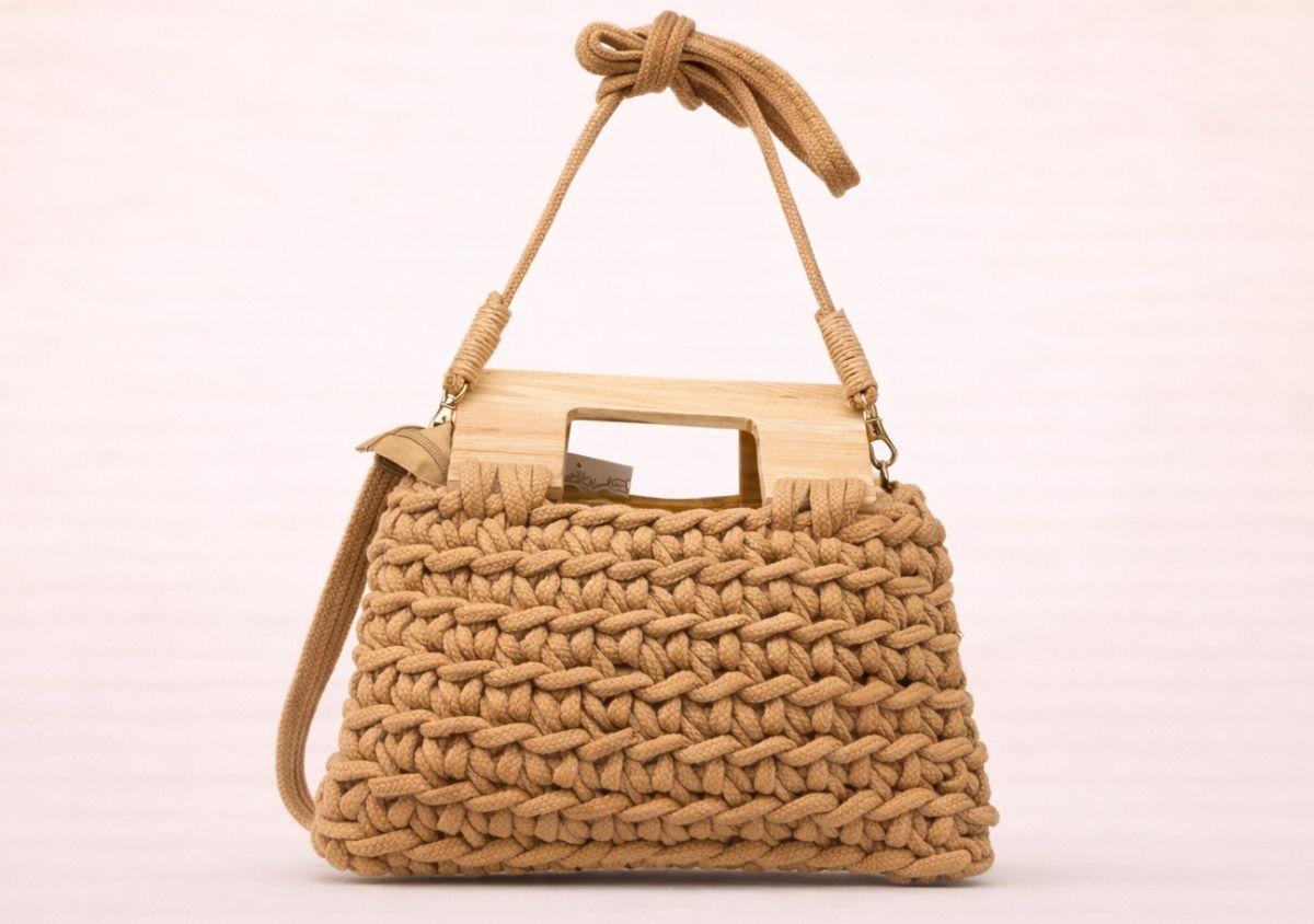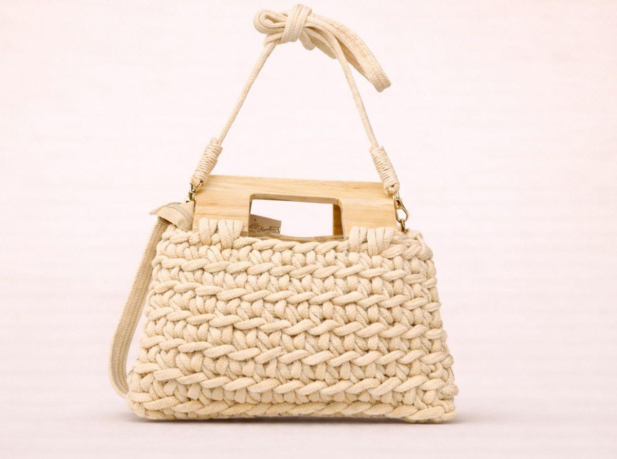 - Estilo: Es una pieza de estética bohemia y veraniega, similar a los bolsos de crochet o macramé.