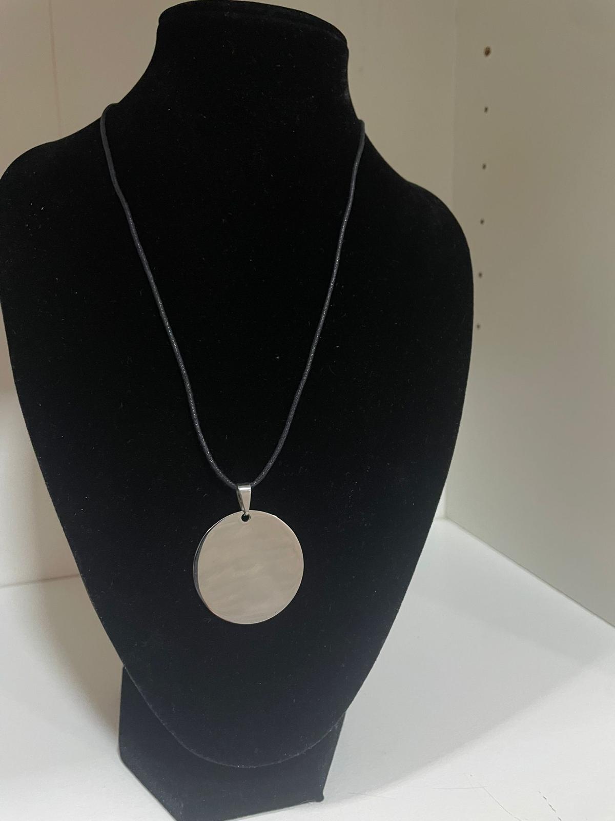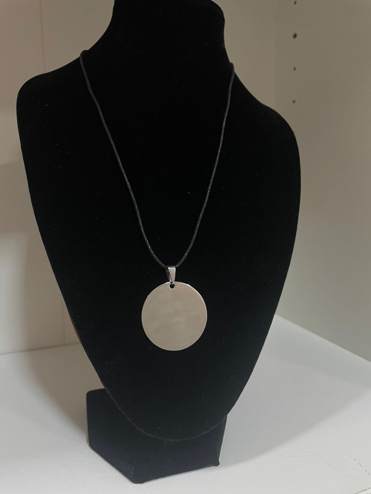 - Diseño: Disco circular con acabado pulido tipo espejo y un pequeño orificio para el enganche.