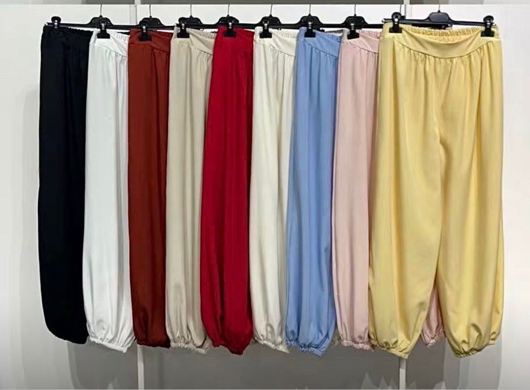 - PantalĂłn Bombacho: De corte holgado con cintura elĂĄstica y puños elĂĄsticos en los tobillos, lo que crea un efecto de volumen caracterĂstico de este estilo.