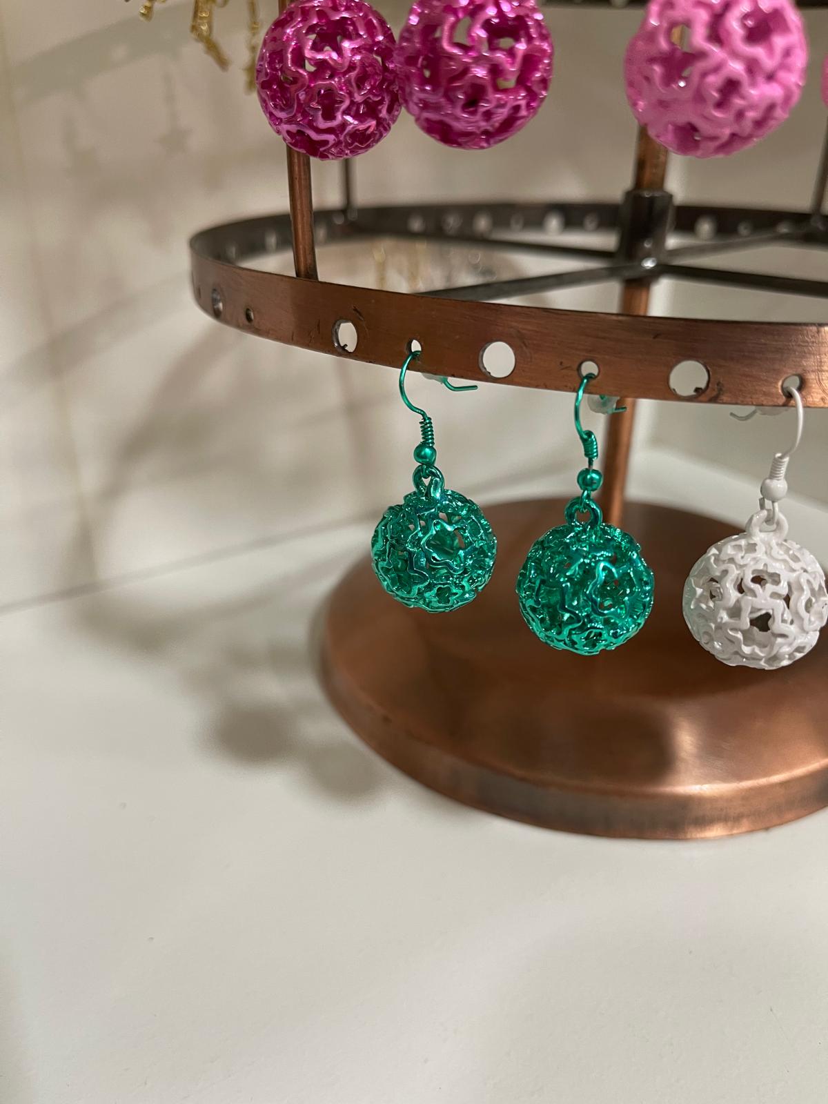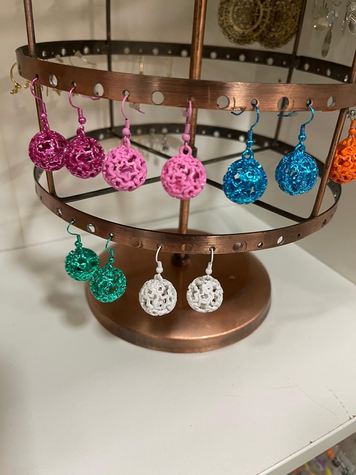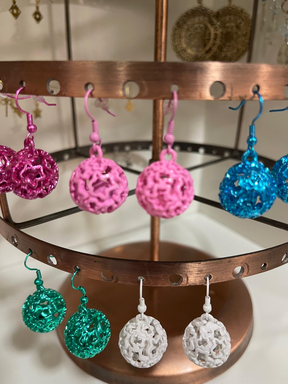 Estos accesorios suelen estar fabricados con ganchos de metal (como acero inoxidable o plata) y esferas que pueden ser de metal lacado, plástico ABS impreso en 3D o incluso alambre moldeado a mano.