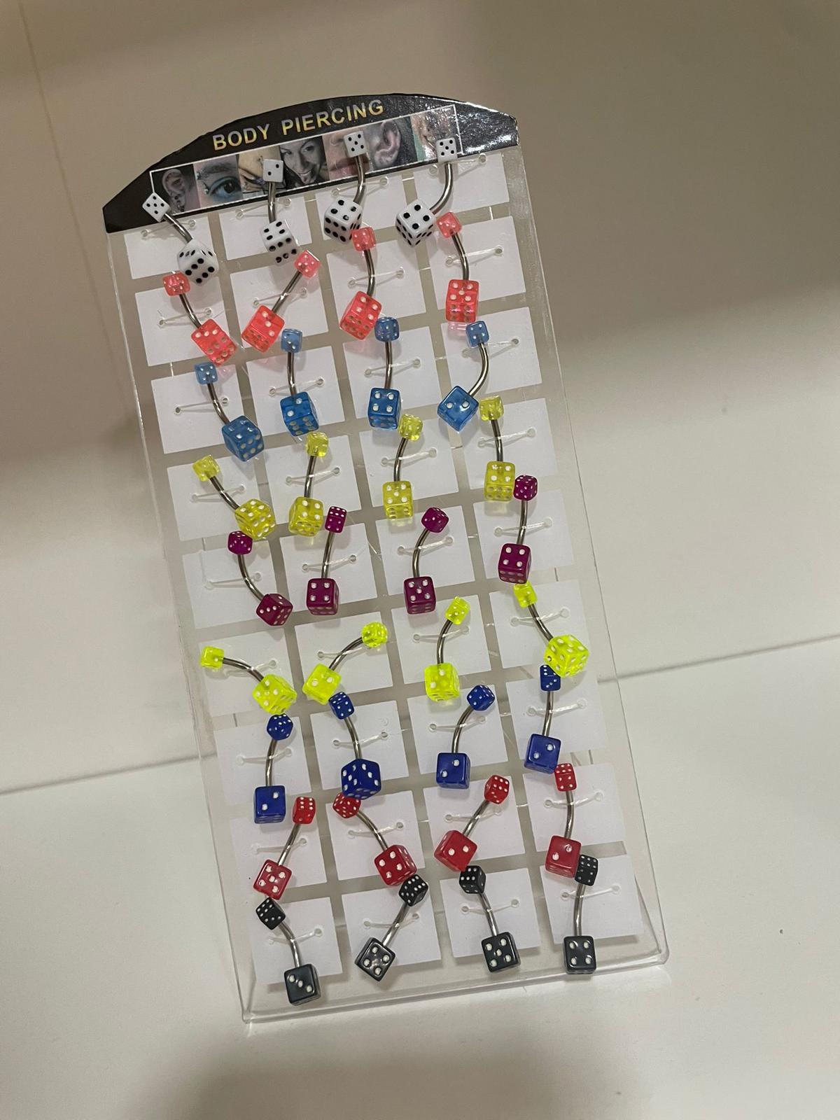 Los piercings están dispuestos en un expositor de plástico y presentan las siguientes caracterÃsticas: