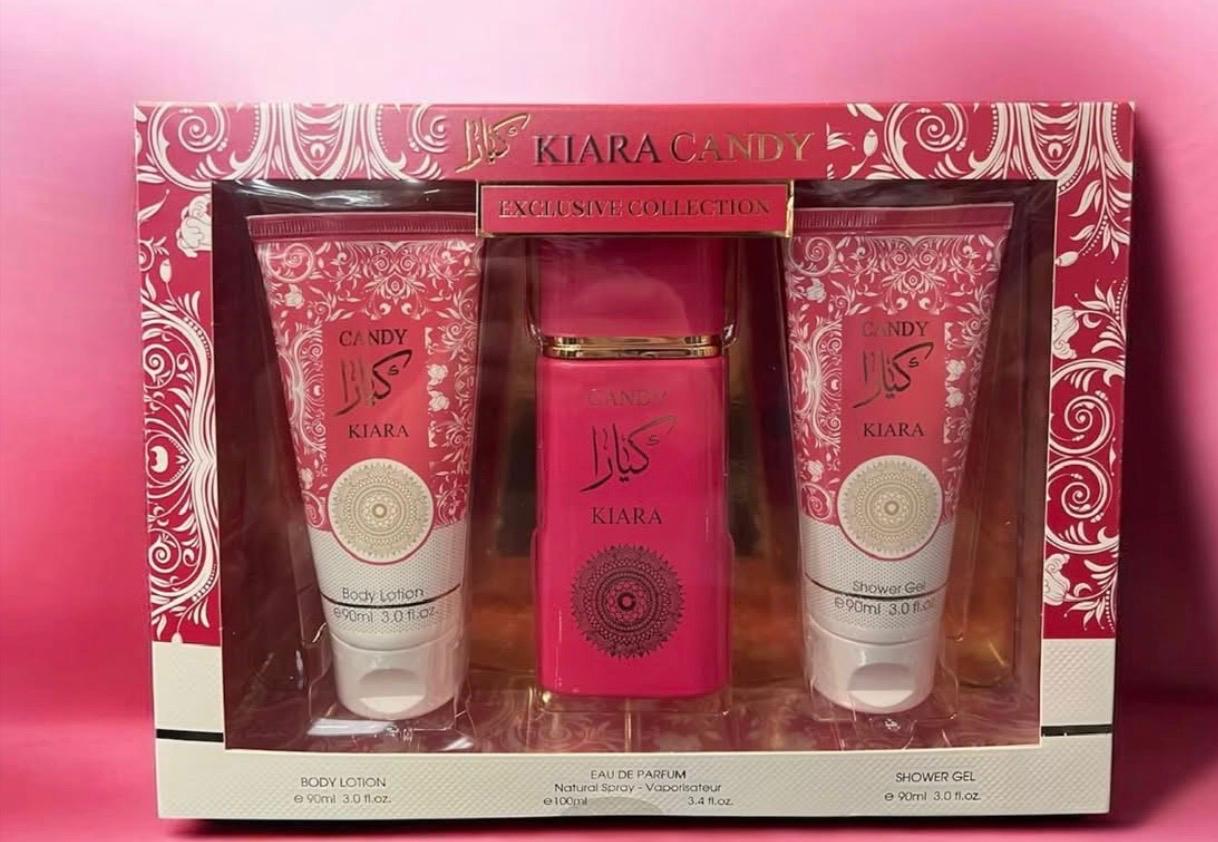 La fragancia Kiara Candy se caracteriza por ser una mezcla femenina y elegante, a menudo comparada con el estilo de Yara Rosa. Sus notas principales incluyen: