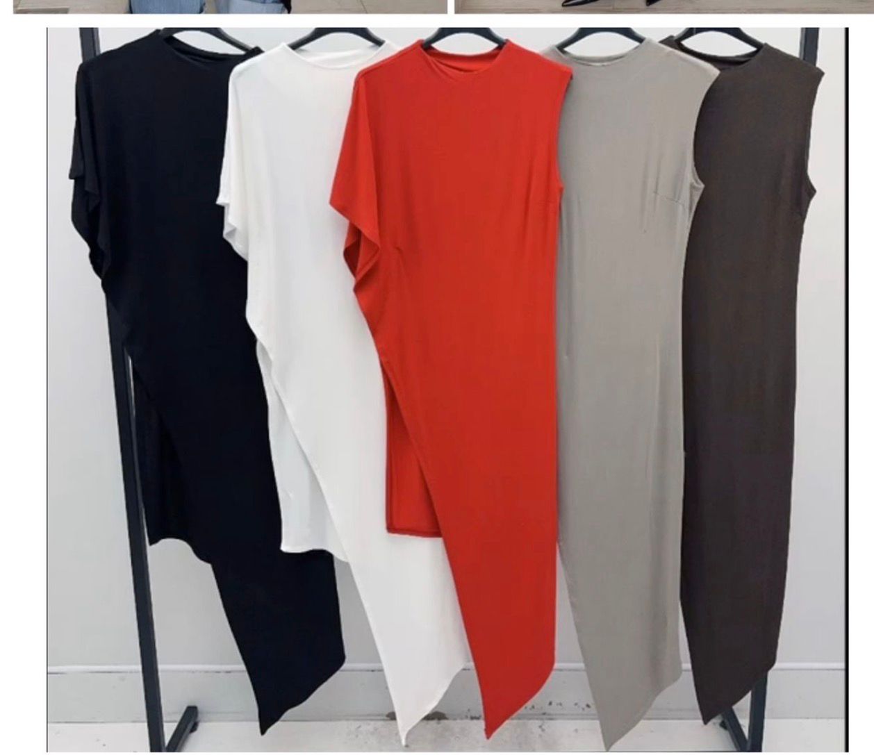 Este es un top largo asimétrico de color negro que se ha vuelto viral recientemente, destacado por su diseño moderno de cuello alto y caída irregular.